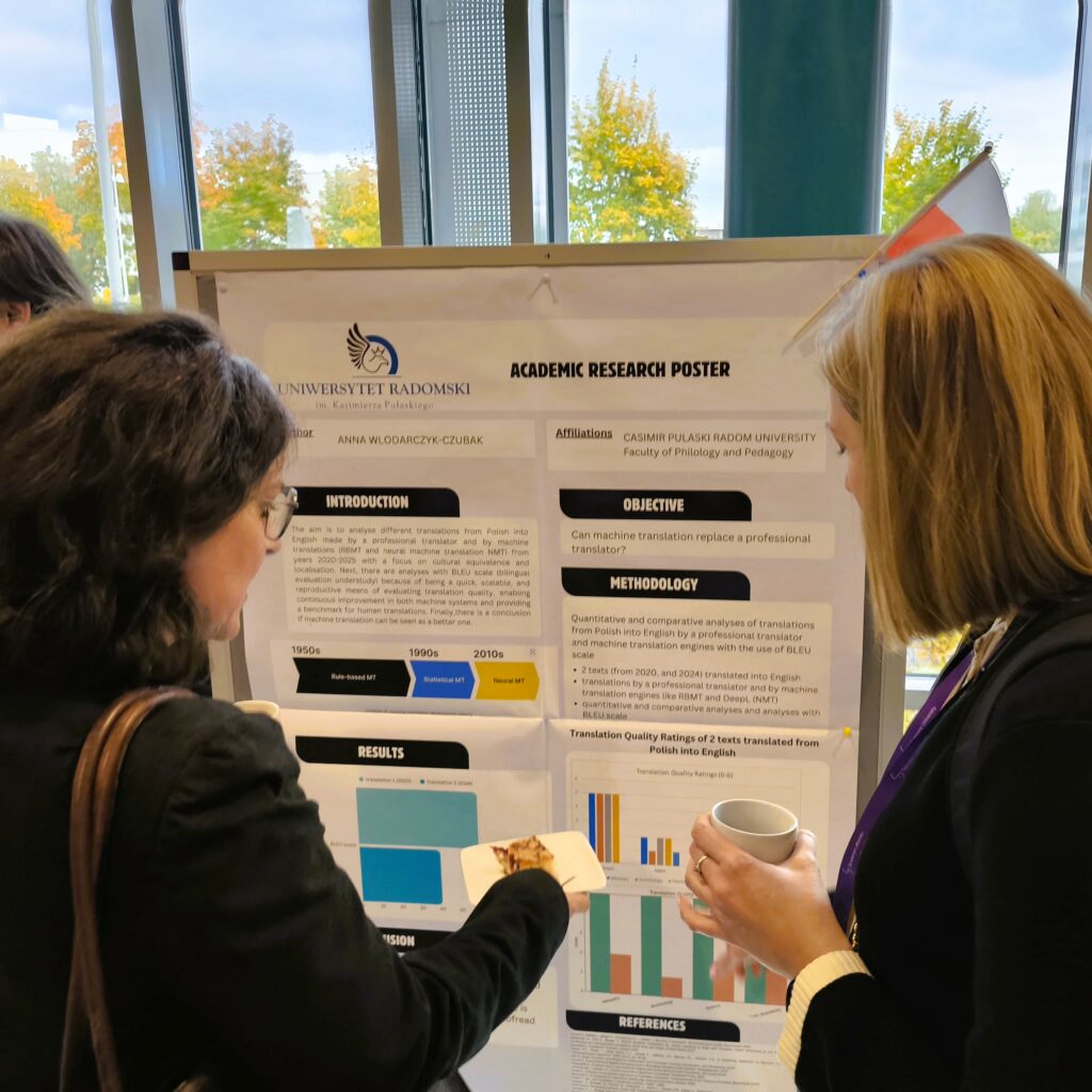 Zaprezentowała również swoją pracę pt. „Can machine translation replace a professional translator?”, dowodząc nadal wyższość profesjonalnego tłumacza nad tłumaczeniami maszynowymi, na przykładzie analizy dwóch tekstów tłumaczonych z języka polskiego na język angielski przy użyciu narzędzi RBMT oraz Neural AI.