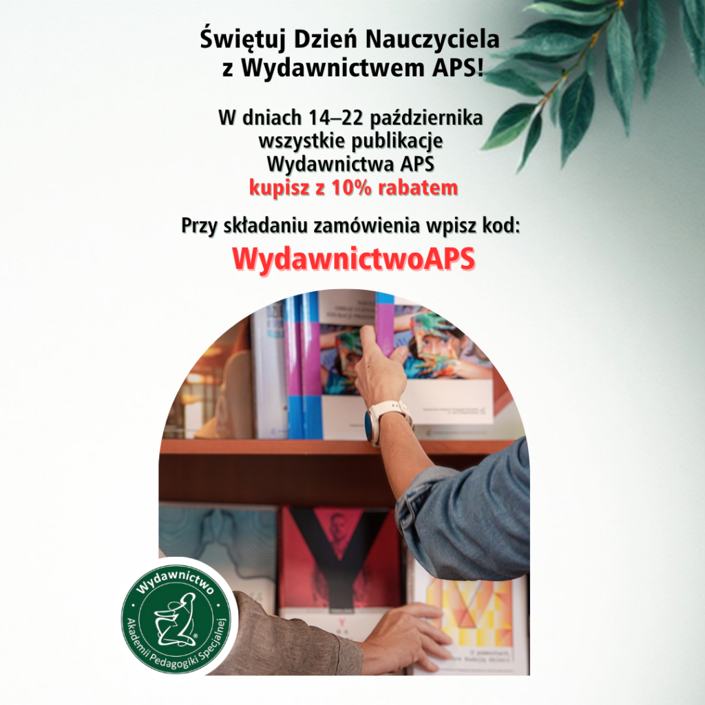 Dodatkowo z okazji Dnia Nauczyciela w dniach 14–22 października 2025 r. wszystkie publikacje z księgarni internetowej Wydawnictwa APS będą dostępne z rabatem 10%.