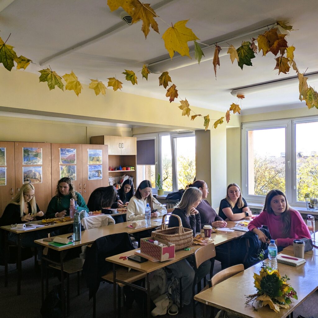 Było wiele okazji, by z dr Katarzyną Ziębakowską-Cecot rozpoznawać gatunki roślin i zwierząt w najbliższej okolicy, a z dr inż. Moniką Maj wykonać z jesiennych liści ozdobne róże. Po powrocie na Wydział studenci, według własnego pomysłu, ozdobili pracownię STEM w jesiennym klimacie. Teraz jest to wspólna przestrzeń, w której jeszcze bardziej będziemy angażować się w różne działania edukacyjne.