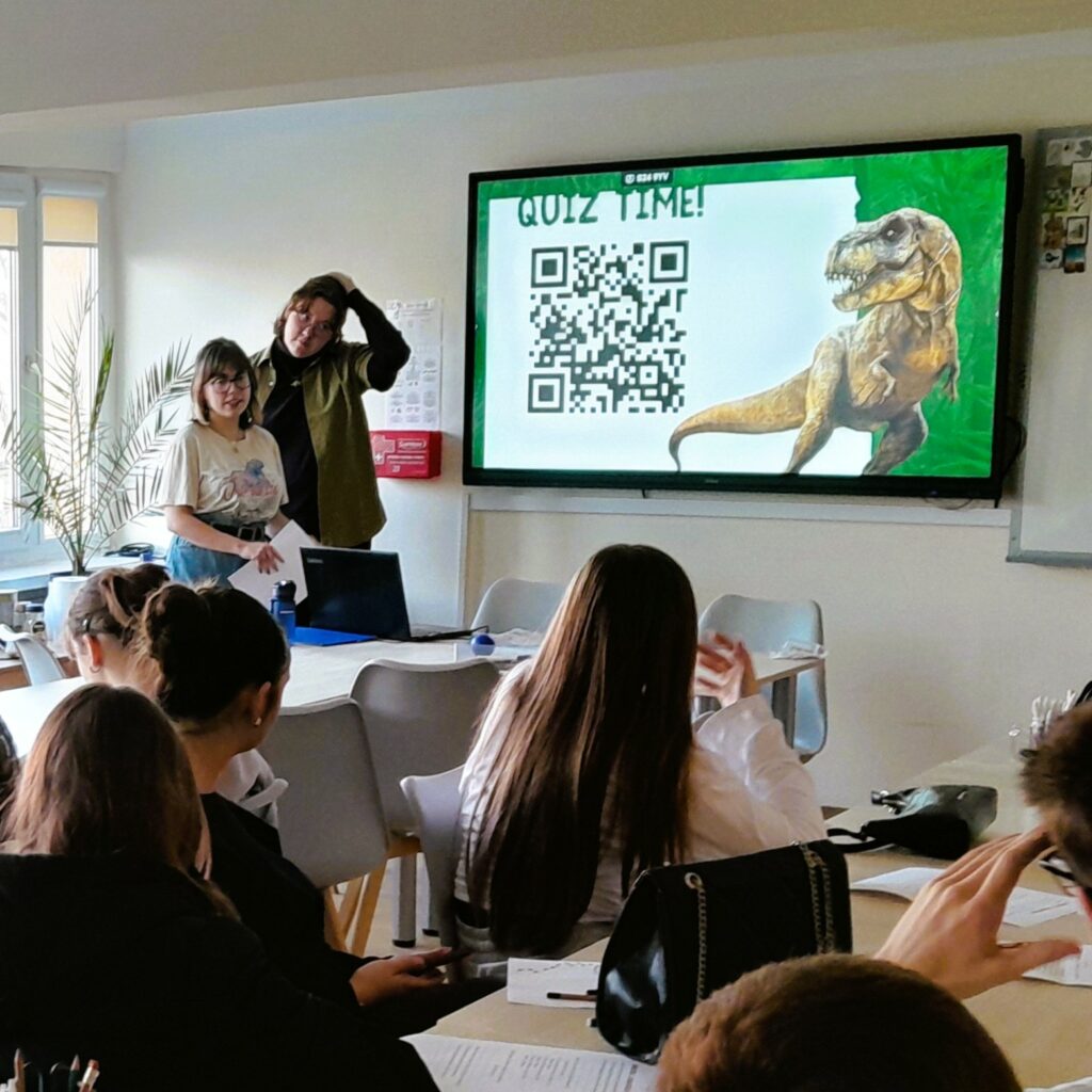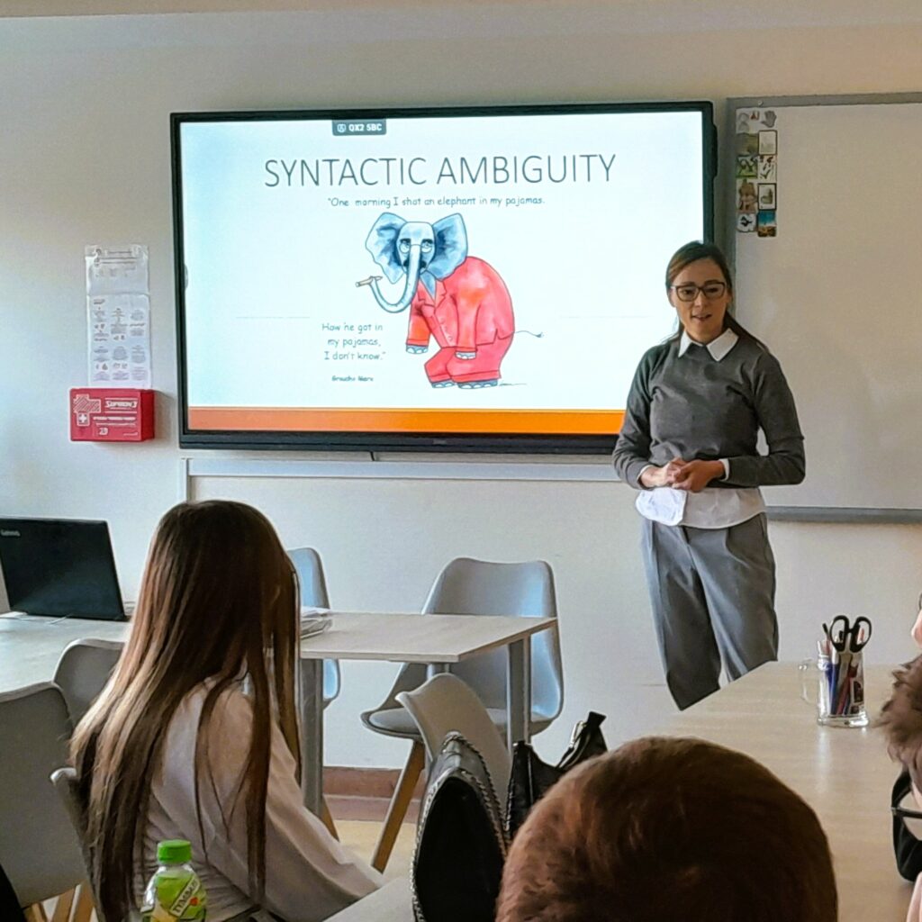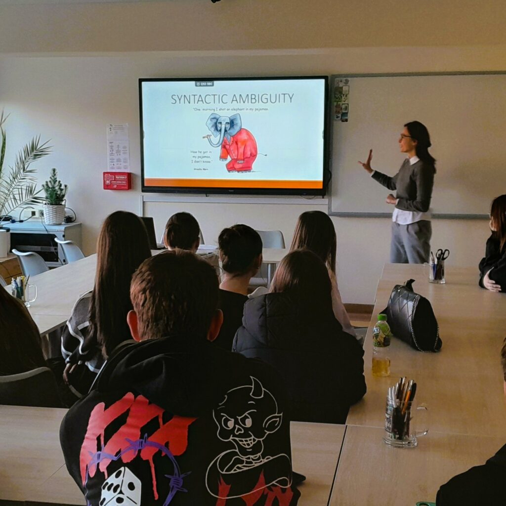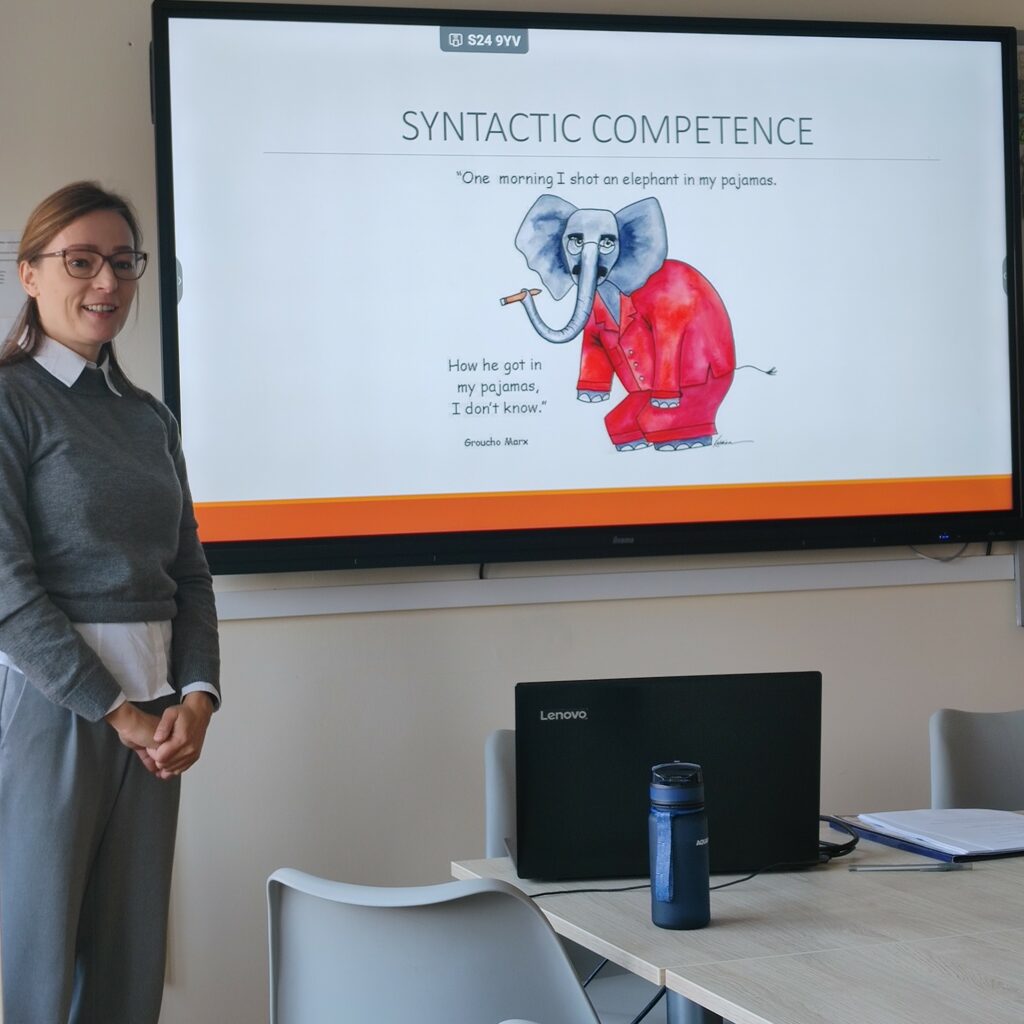 Uczniowie XII Liceum Ogólnokształcącego im. Witolda Gombrowicza w Radomiu wzięli na naszym Wydziale udział w inspirujących warsztatach przygotowanych przez Panią Dr Beatę Nawrot-Lis pt. „Syntactic ambiguity”. W spotkaniu uczestniczyły także nasze dwie studentki filologii angielskiej – Pani Alicja Siedlecka i Pani Zuzanna Dżbik, które przedstawiły pełną humoru i wyobraźni prezentację „Dinosaurs as pets – let’s see which one is best for you!”