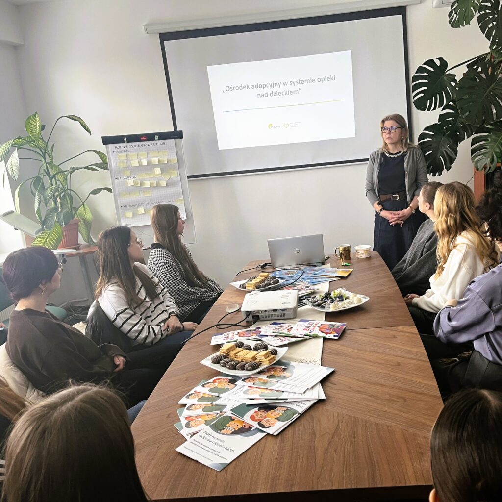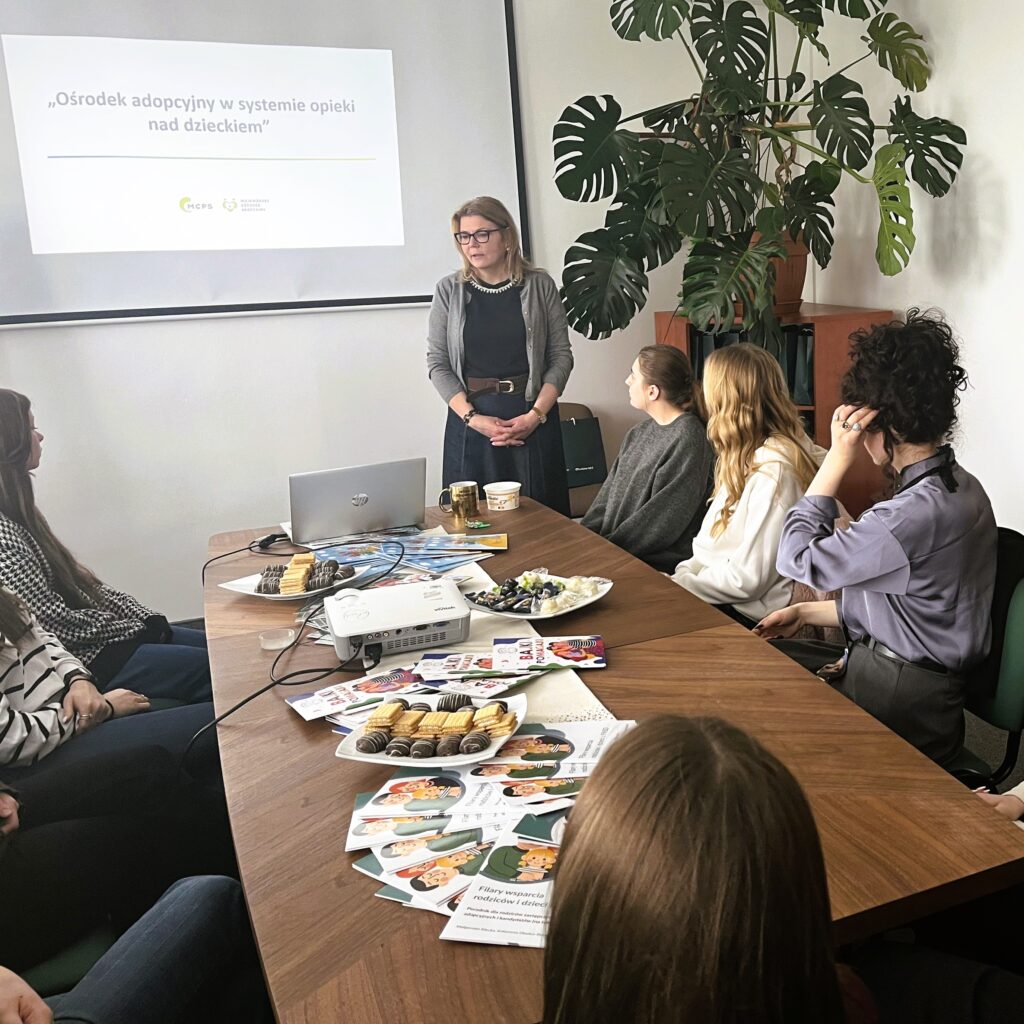 Podczas spotkania studenci mieli okazję dowiedzieć się, jak przebiega procedura adopcyjna, czym zajmuje się ośrodek adopcyjny oraz jaki rodzaj działalności prowadzi na rzecz dzieci i rodzin. Pani kierownik podkreśliła ogromne znaczenie rodzicielstwa zastępczego oraz adopcji, zwracając uwagę na potrzebę ich promowania w społeczeństwie. Szczególnie mocno zaakcentowano fakt, że największym problemem, z jakim obecnie boryka się ośrodek adopcyjny, jest poszukiwanie kandydatów na rodziców adopcyjnych. Jest to niezwykle istotny problem społeczny, wymagający zaangażowania i szerokiej świadomości społecznej.
